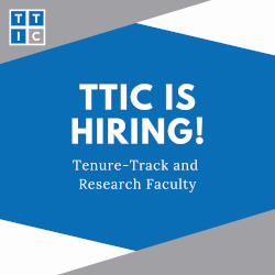 Join our research-focused academic community at TTIC! The Institute is seeking applicants for both tenure-track and research faculty positions, particularly in the areas of machine learning, computer vision, natural language processing and speech, robotics, computational biology, and algorithms and complexity theory. TTIC offers an exceptional environment that sparks creativity, and nurtures the next generation of leading computer scientists.