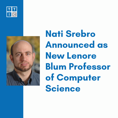 Professor Nati Srebro has been named the new Lenore Blum Professor of Computer Science at the Toyota Technological Institute at Chicago (TTIC), succeeding Professor David McAllester, who has since been appointed Professor Emeritus.